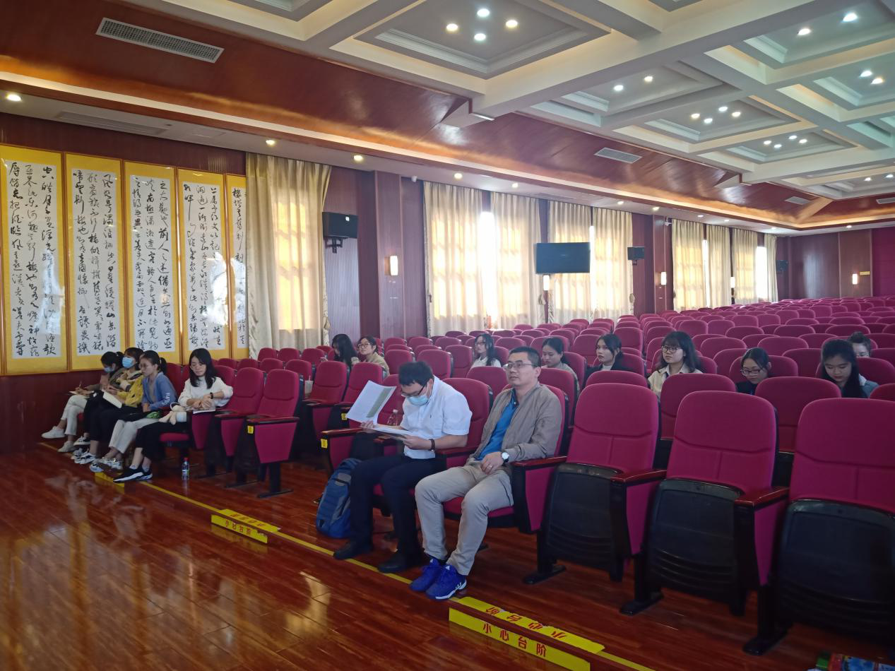 12 月7日下午,为了考察我院15名本科实习生在海口市城西中学近两个月实习的具体成效,城西中学实习小组在城西中学南楼5楼报告厅开展了实习总结汇报。海口市城西中学陈日果校长、学院思政系主任董前程、团委书记陈霆以及城西中学政治学科组的各位实习指导老师参加了此次总结汇报会。
