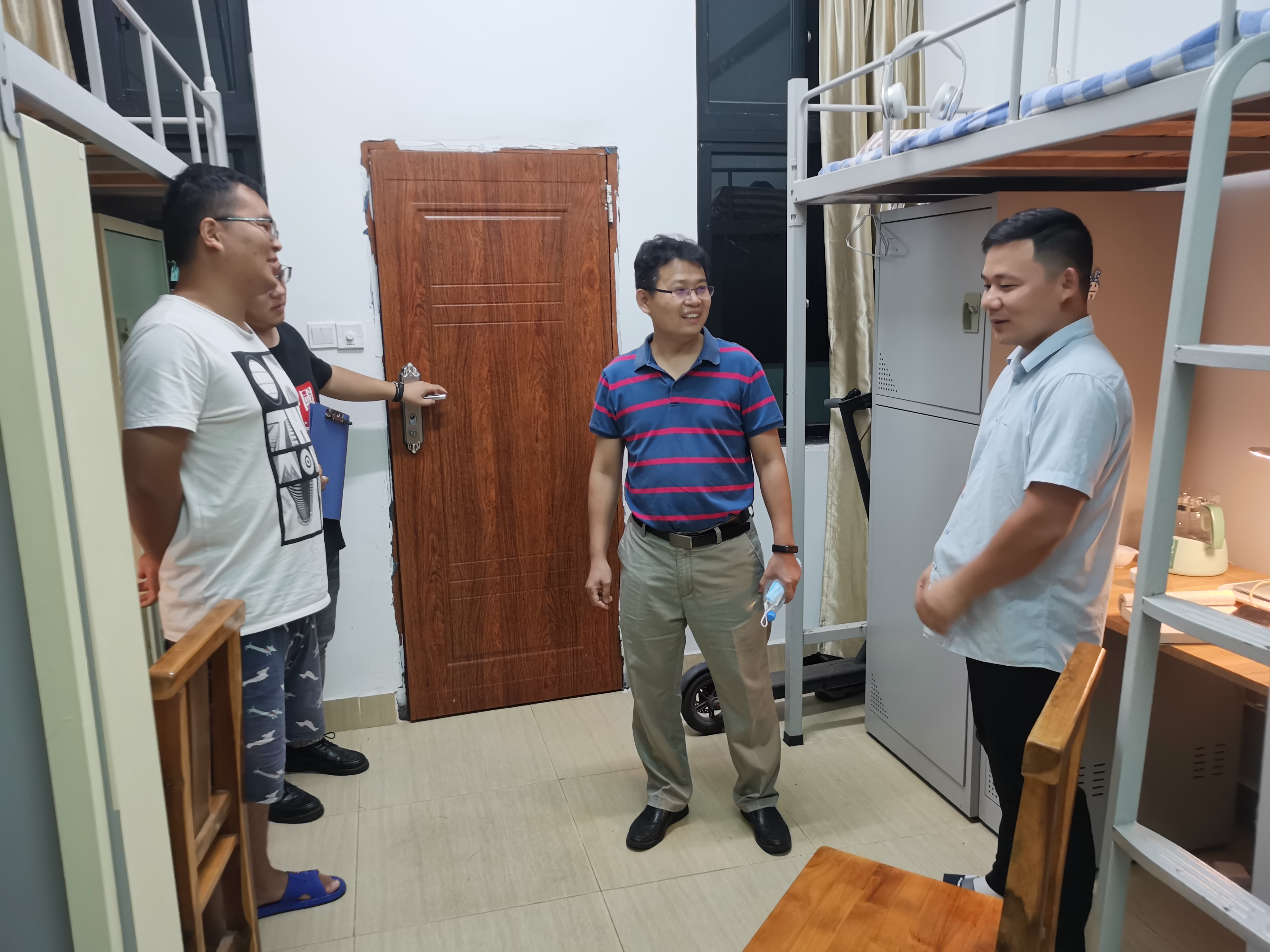 每走进一个寝室,老师们都仔细查看学生寝室设施,记录寝室存在问题,并表示如有问题可向学院反应。老师们亲切与学生交谈,询问学生学习和生活情况,并提醒同学们在平常的生活中,务必注意财物安全,用电安全,人身安全,保持宿舍卫生,加强内务管理,欢迎2021级新生加入海南师范大学马克思主义学院这个大家庭。