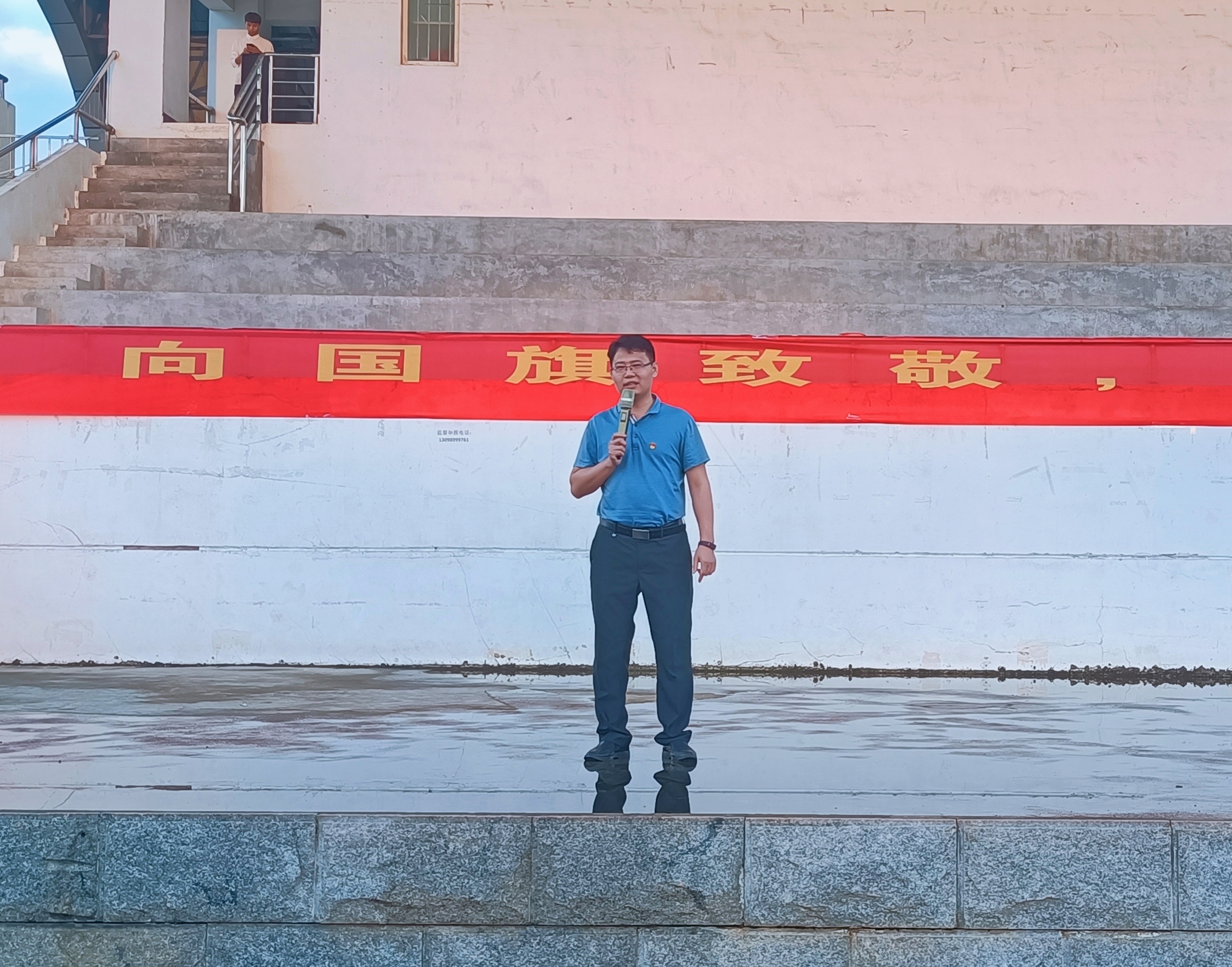 伴随着庄严的国歌,鲜艳的五星红旗徐徐展开,在全体师生的注目中,迎着初升的太阳,在晨曦中迎风飘扬。