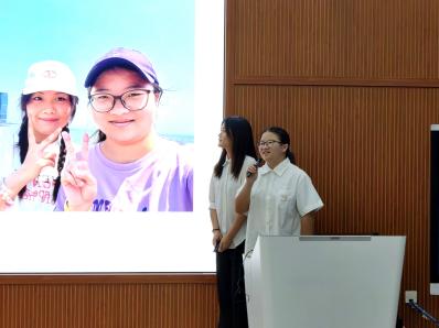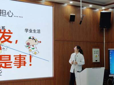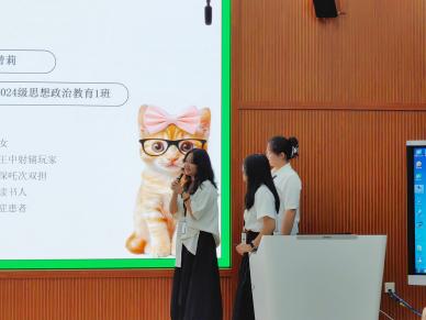 在新老生交流环节,2024级思想政治教育1班的曾肇湑学姐为各位新生贴心准备了校园生活攻略,包括军训注意事项、学习必备软件、校园美食推荐,希望他们能够更快地适应大学的学习生活,度过美好的四年时光。