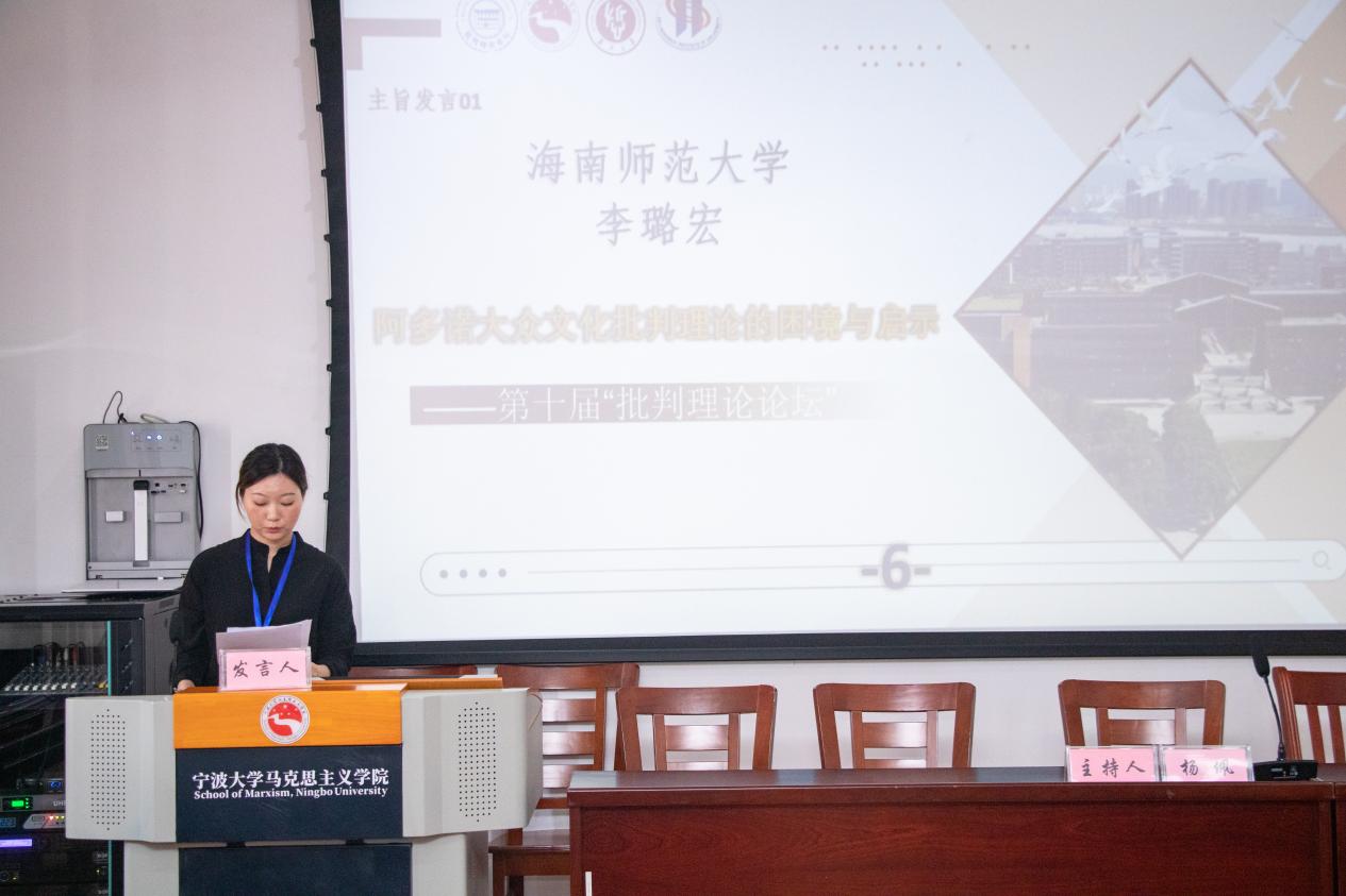 本次论坛共设置了六个分会场,与会专家学者以严谨的学术态度积极展示最新研究成果,围绕“大众文化/文化工业与大众传媒批判”“现代性反思与后现代性批判”“工具理性与科技意识形态批判”“法兰克福学派文化批判理论与伯明翰学派大众文化理论”“中东欧新马克思主义文化批判理论”等多个议题展开深层次的学术交流。我院2023级硕士研究生李璐宏以《阿多诺大众文化批判理论的困境与启示》为题,在分会场六进行了主题发言。
