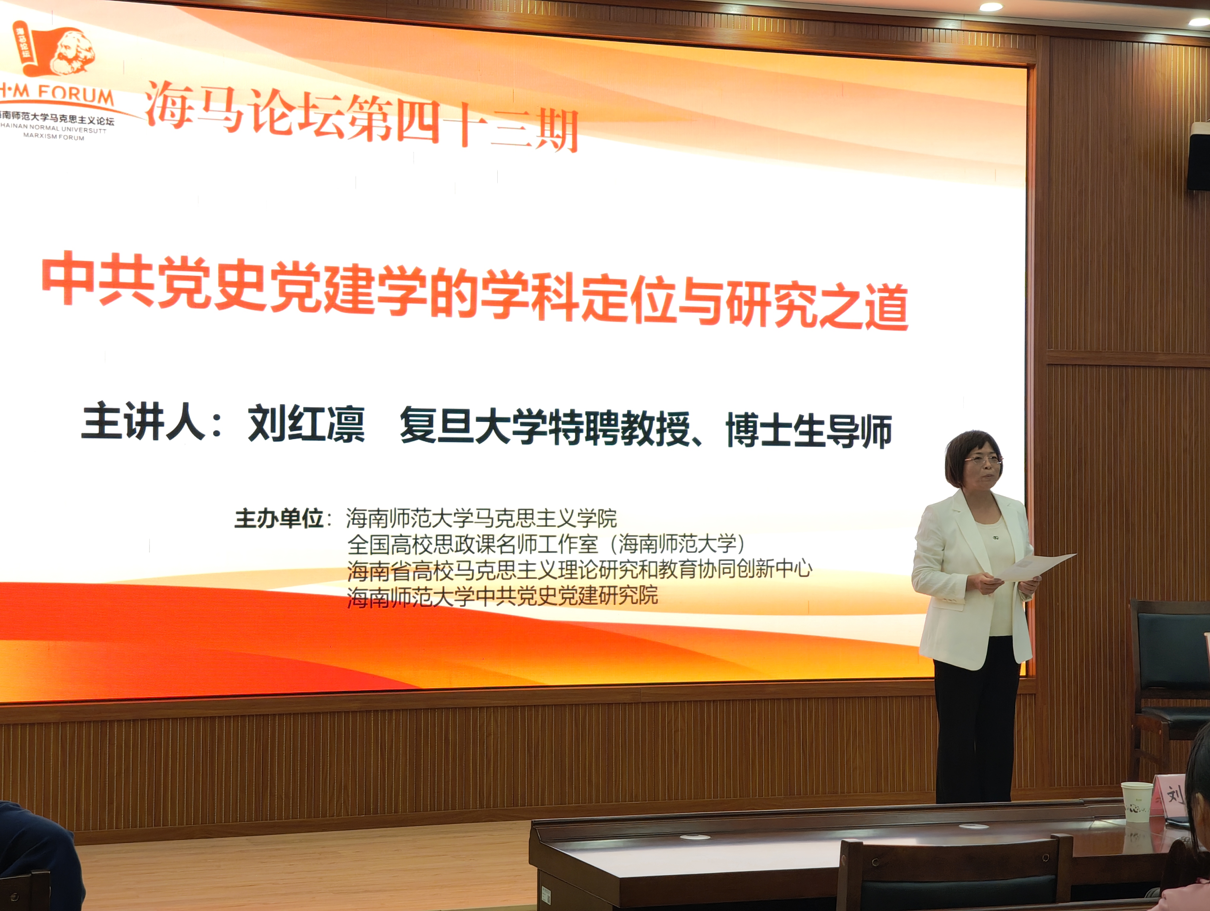 2025年11月14日下午,应海南师范大学马克思主义学院邀请,复旦大学特聘教授、中共党史党建研究院院长、党内法规研究中心主任、教育部 “长江学者” 特聘教授刘红凛,在马克思主义学院201报告厅作了题为《中共党史党建学的学科定位与研究之道》的学术讲座。学院百余名师生参会,讲座由马克思主义学院院长、博士生导师陈红主持。