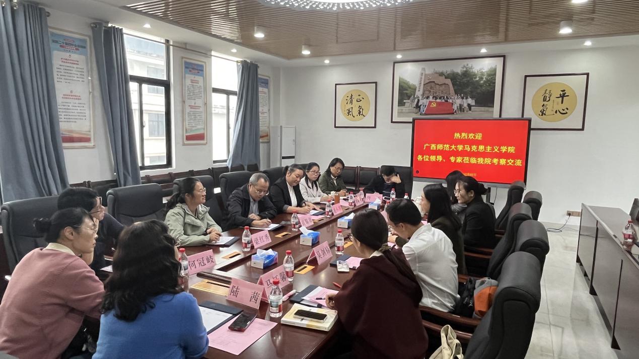 广西师范大学马克思主义学院由黄瑞雄教授(教研室首席专家、博导)带队,凌小萍教授(自治区教委委员、博导)、何冠岐主任(教研室主任、硕导)、王秋梅书记(党支部书记、硕导)等10名教学科研骨干共同参与,覆盖教授、副教授、讲师等多个层级。