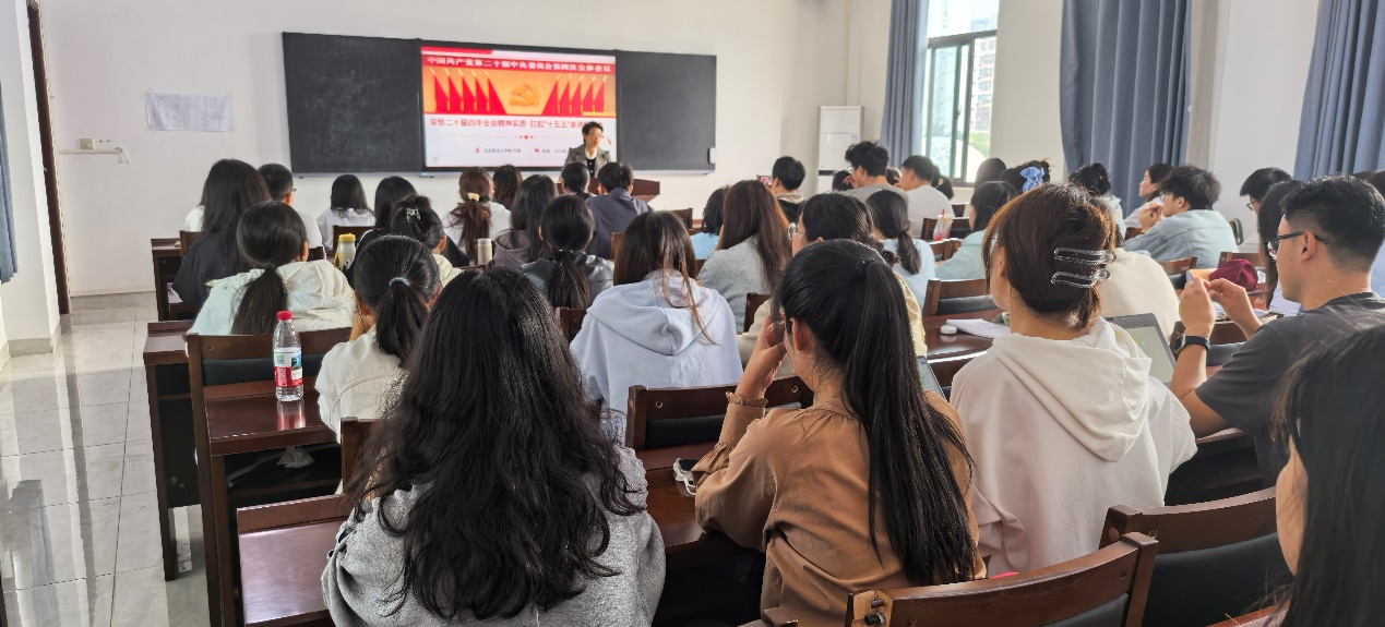 2025年12月11日下午三点,马克思主义学院503教室,学院党委书记兰岚以《深悟党的二十届四中全会精神实质,扛起“十五五”奋进新使命》为题,为学院全体入党积极分子讲授专题党课,学院党委副书记王巍巍主持本次党课。