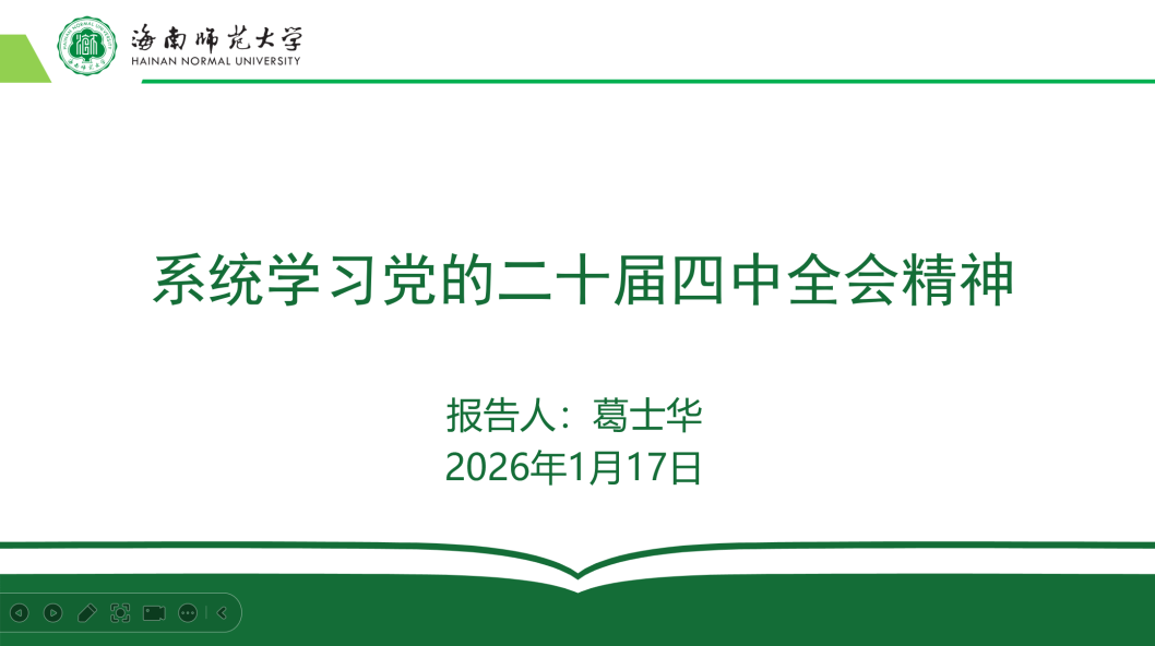 为学深悟透党的创新理论,我系于2026年1月17日组织全体教师深入学习党的二十届四中全会精神,旨在引导全系教师深刻领会全会精神实质,将思想和行动统一到党中央决策部署上来。此次集体备课会由葛士华老师担任主讲,其他系内教师参加。
