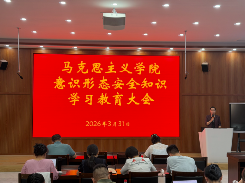 为深入学习贯彻习近平总书记关于意识形态工作的重要论述,全面落实学校党委关于意识形态安全工作部署,进一步强化全院党员政治意识与阵地意识,2026年3月31日下午,海南师范大学马克思主义学院在201报告厅组织开展意识形态安全知识学习大会。全院师生党员参加学习。