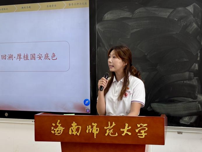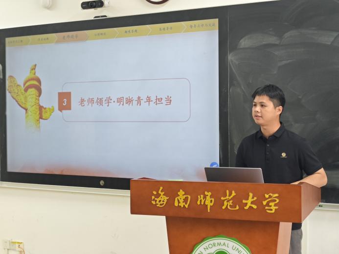 在红色故事领学环节,活动紧扣红色基因传承,双线联动厚植家国情怀。首先,榕树青年宣讲团成员、优秀退伍大学生贾芸深情聚焦长白山革命根据地的峥嵘岁月,生动还原革命先辈在东北林海雪原依托险峻地形开展敌后游击战争的艰苦历程,让现场师生沉浸式感受革命精神。紧接着,青年马克思主义研究协会办公室负责人韦朝欢同学带领大家重温海南琼崖革命根据地跨越二十三年的奋斗史诗,细致讲述冯白驹等革命领导人在孤岛无援的绝境中,与敌人殊死搏斗、坚守革命阵地的传奇故事,进一步厚植师生家国情怀。